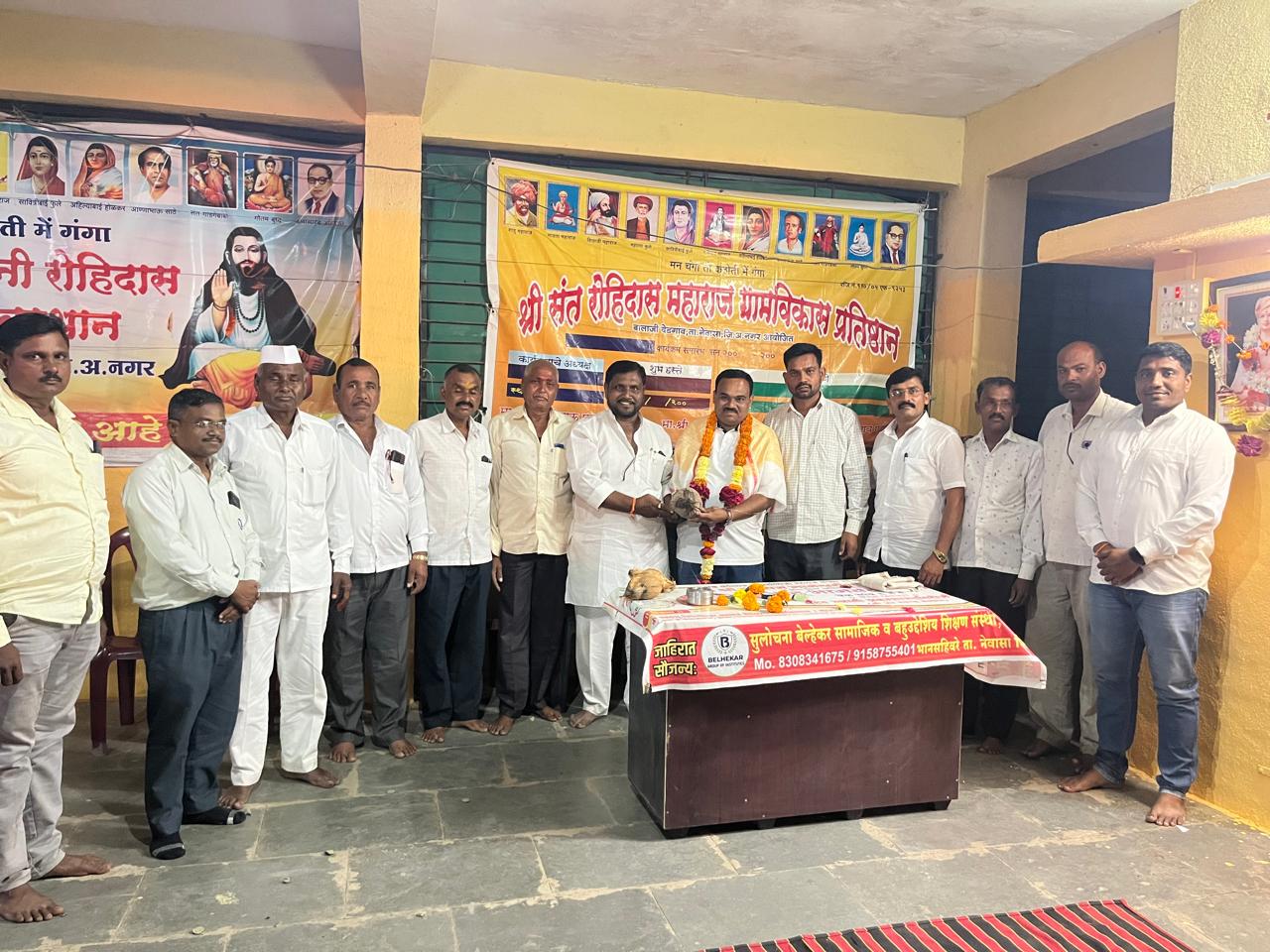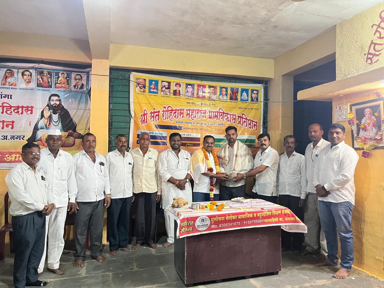 बालाजी देडगाव (प्रतिनिधी)- नेवासा तालुक्यातील बालाजी देडगाव येथील संत शिरोमणी गुरु रविदास महाराज देवस्थानची नूतन कार्यकारणी नुकतीच जाहीर करण्यात आली. देवस्थानचे संस्थापक ज्येष्ठ पत्रकार बन्सीभाऊ एडके यांच्या मार्गदर्शनाखाली झालेल्या बैठकीमध्ये देवस्थानचे नूतन अध्यक्ष, उपाध्यक्ष, सचिव व सदस्यांच्या निवडी करण्यात आल्या. यावेळी देवस्थानच्या अध्यक्षपदी मारुती रामदास एडके, उपाध्यक्षपदी ज्ञानेश्वर एकनाथ एडके यांची तर सचिवपदी प्रल्हाद बन्सीभाऊ एडके, सहसचिवपदी हरिभाऊ महादेव एडके यांची निवड करण्यात आली.