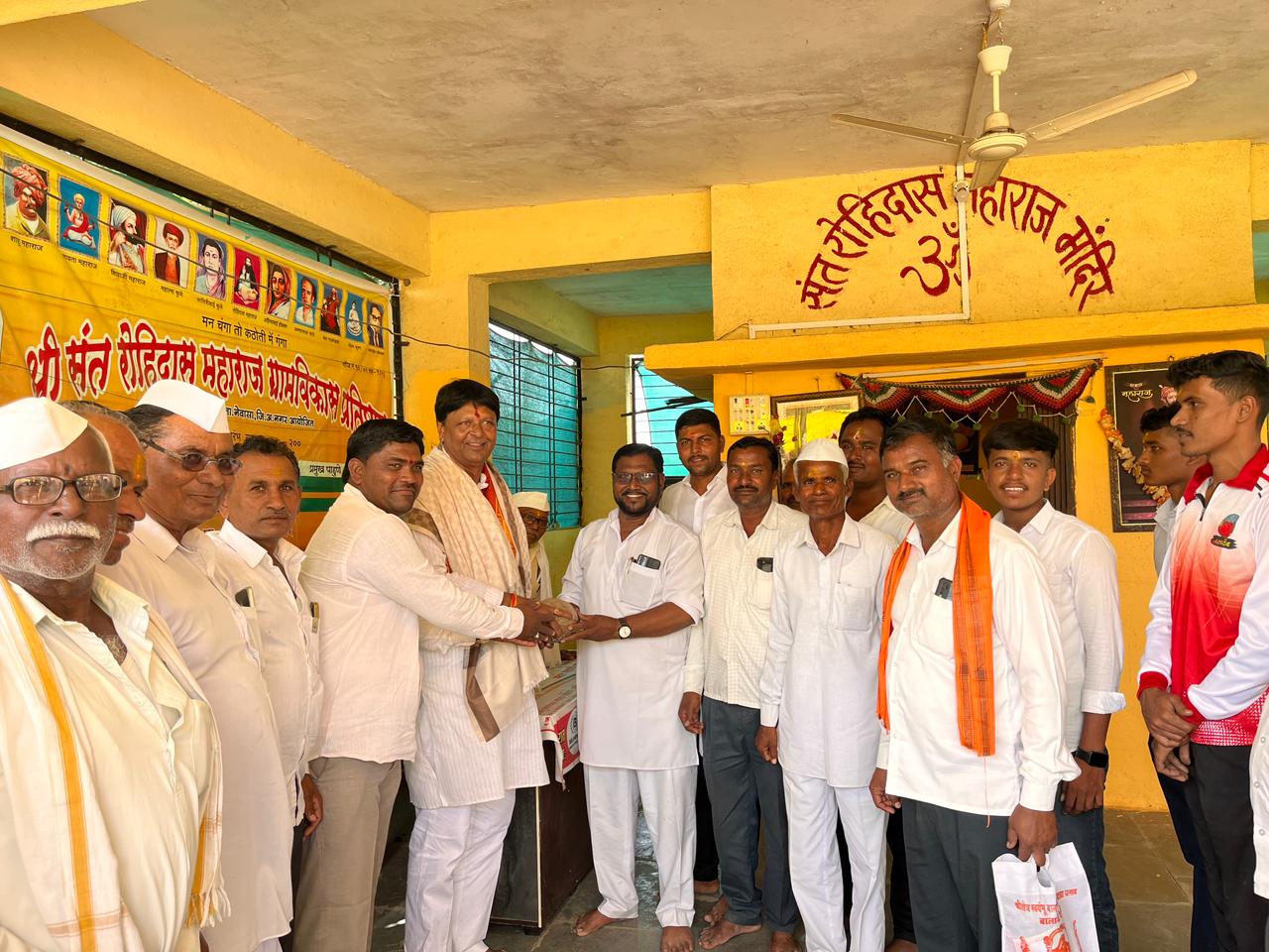 त्यानंतर विठ्ठलराव लंघे पाटील यांनी संत रोहिदास महाराज मंदिरात देवस्थानला सदिच्छा भेट देत संत रोहिदास महाराजांना अभिवादन केले. यावेळी संत रोहिदास महाराज देवस्थानच्या वतीने आमदार विठ्ठलराव लंघे पाटील यांचा सन्मान करण्यात आला. यानंतर आमदार लंघे पाटील यांनी महादेव मंदिरास भेट देत दर्शन घेतले.