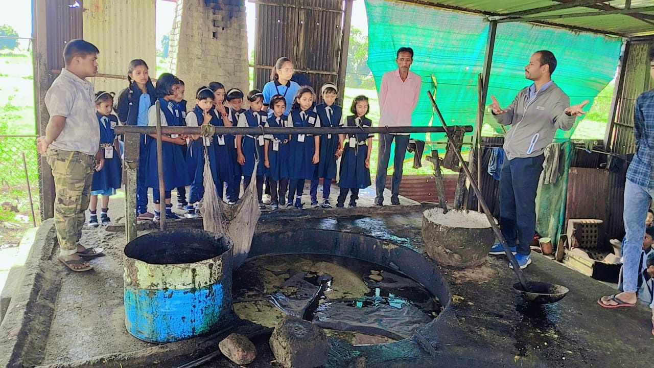 शाळेच्या परिसरातील गेवराई येथील गुळ निर्मिती प्रकल्पास क्षेत्र भेट देण्यात आली. तसेच ग्रामपंचायत कार्यालय आदी ठिकाणी भेट देऊन माहिती घेतली.विद्यार्थ्यांना उसाच्या रसापासून गुळ निर्मिती कशी केली जाते .हे विस्तृतपणे सांगितले व गुळ निर्मिती प्रक्रिया प्रत्यक्षात दाखवली. उसाचा रस मशिनरीच्या सहाय्याने कसा काढला जातो, नंतर तो उकळला जातो , ऊसाच्या रसापासून ते गुळ तयार होण्यापर्यंतची संपूर्ण प्रकिया विद्यार्थ्यांनी प्रत्यक्ष अनुभवली. ही सर्व प्रक्रिया विद्यार्थी बारकाईने व काळजीपूर्वक बघत होते.