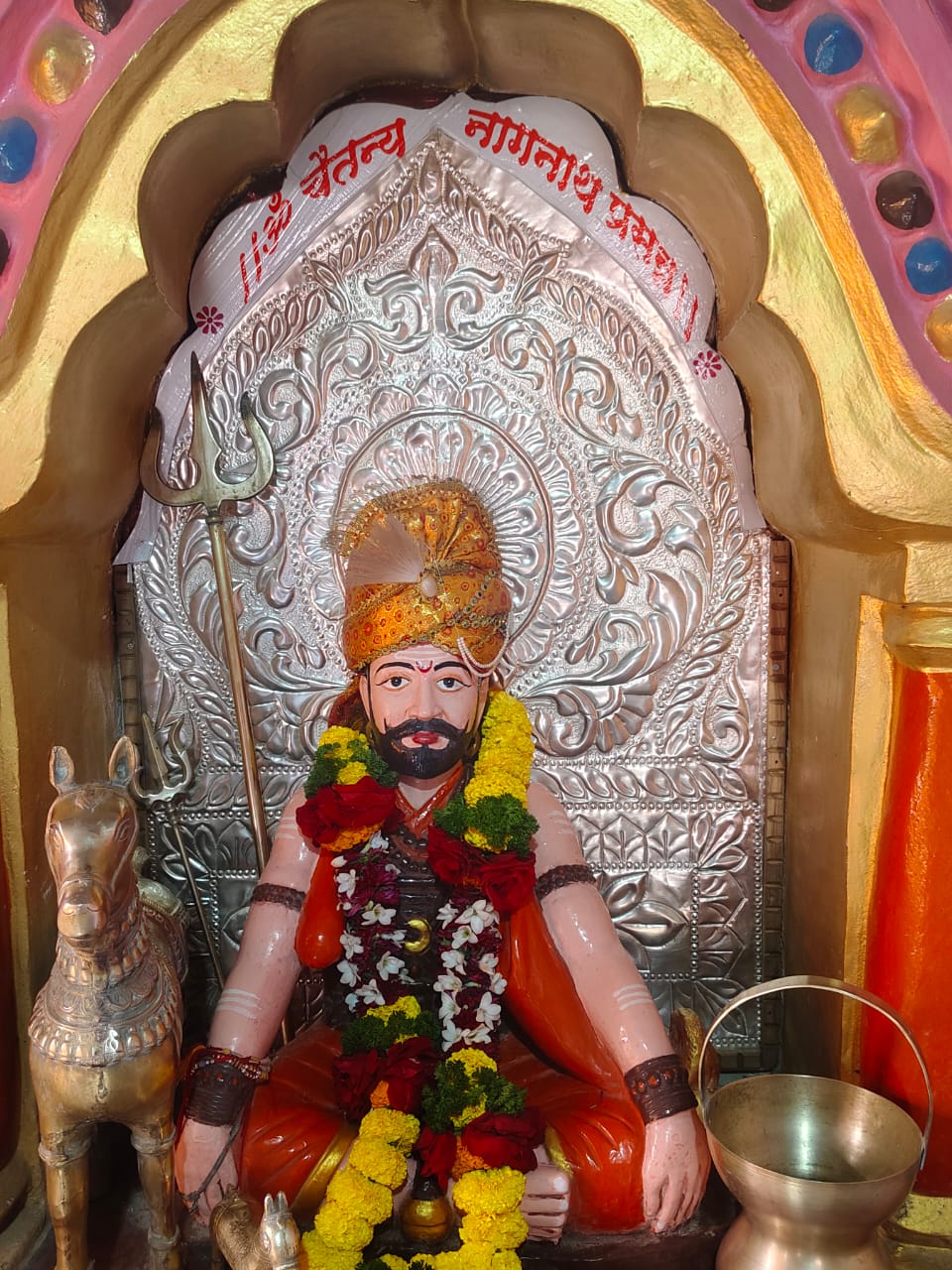 बालाजी देडगाव (प्रतिनिधी)- नेवासा तालुक्यातील तेलकुडगाव येथील श्री चैतन्य नागनाथ महाराज यांच्या चरणी आज साडेचार किलो चांदीचे सिंहासन अर्पण करण्यात आले. तेलकुडगाव येथील सामाजिक कार्यकर्ते कचरू मोहन गायकवाड यांनी नागनाथ चरणी साडेतीन किलो चांदी अर्पण केली होती. त्यांची साडेतीन किलो चांदी आणि नागनाथ देवस्थानची एक किलो चांदी असे दोन्ही मिळून साडेचार किलो चांदीचे सिंहासन तयार करण्यात आले आहे. हे सिंहासन आज श्री चैतन्य नागनाथ महाराज यांच्या चरणी अर्पण करण्यात आले.