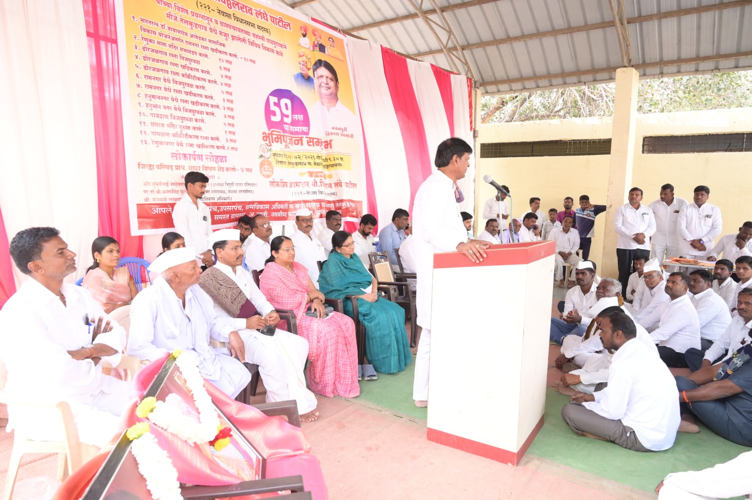 बालाजी देडगाव (प्रतिनिधी)- आमदार विठ्ठलराव लंघे पाटील यांच्या विशेष प्रयत्नांतून व ग्रामपंचायतच्या यशस्वी पाठपुराव्याने तेलकुडगावच्या सर्वांगीण विकासासाठी ६३ लाख रुपये किमतीच्या विकासकामांचे उद्घाटन करण्यात आले. अखंड हिंदुस्थानचे आराध्यदैवत छत्रपती शिवाजी महाराज व राज्यघटनेचे शिल्पकार डॉ.बाबासाहेब आंबेडकर यांच्या प्रतिमेला पाहुण्यांच्या शुभहस्ते पुष्पहार घालून कार्यक्रमाला सुरुवात झाली. शरदराव काळे यांनी अध्यक्षीय सूचना मांडून कानिफनाथ घोडेचोर यांनी अनुमोदन […]