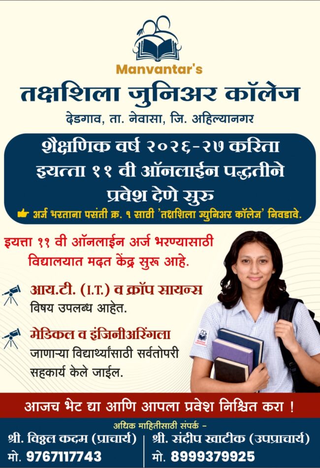 बालाजी देडगाव (प्रतिनिधी)- जिद्द आणि चिकाटीच्या जोरावर ग्रामीण भागातील तरुणही यशाची उत्तुंग शिखरे सर करू शकतात, हे नेवासा तालुक्यातील देडगावच्या पाच सुपुत्रांनी सिद्ध केले आहे. पोलीस दलात चार तरुणांची आणि रेल्वे विभागात एकाची निवड झाल्याबद्दल देडगाव ग्रामस्थांच्या वतीने त्यांचा भव्य ‘नागरी सत्कार’ सोहळा उत्साहात पार पडला. यावेळी पोलीस दलात निवड झालेले कु. ज्योती संतोष देवकाते, […]