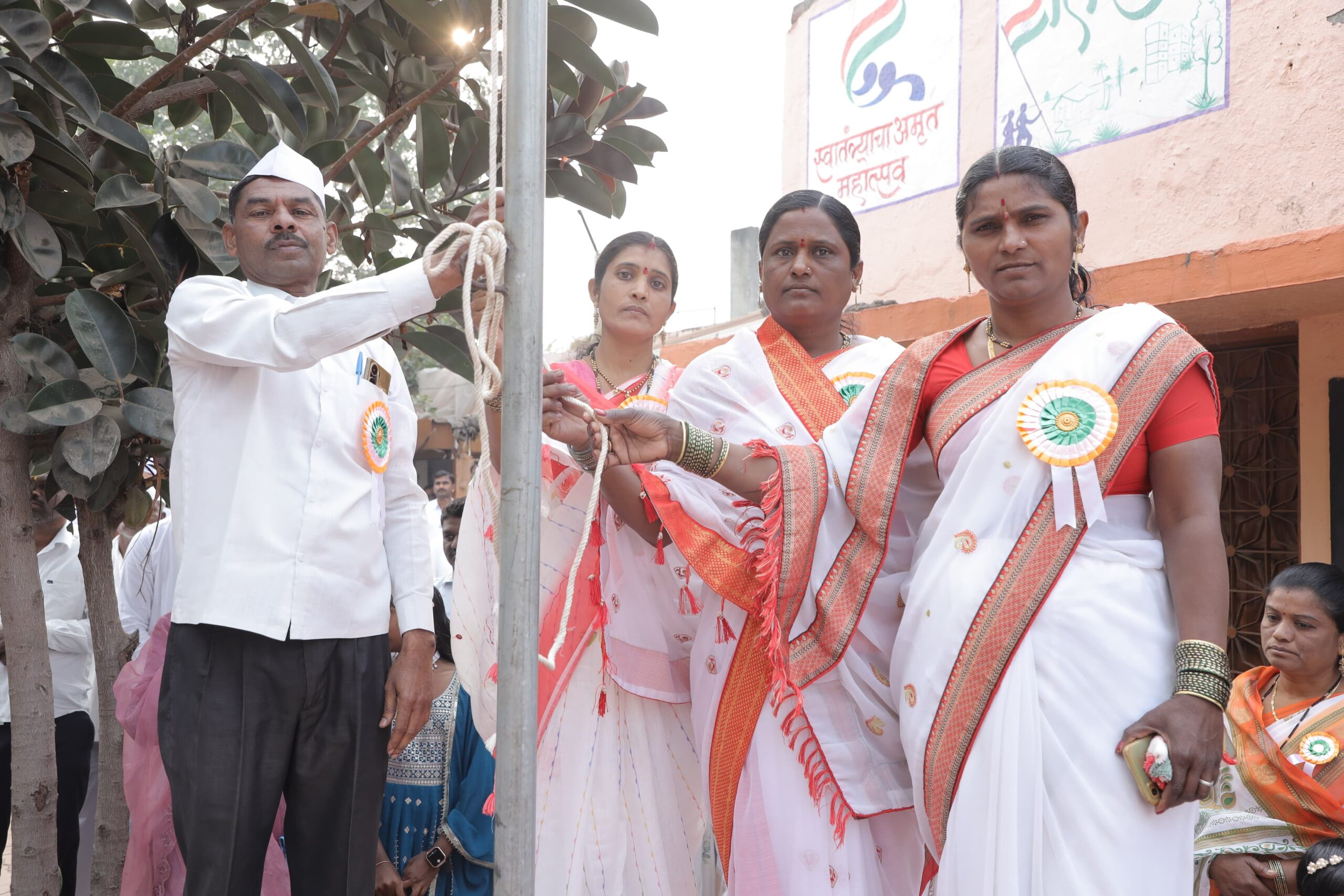 सुरेखा शरद काळे व ग्रामसेवक बी.बी.काळे भाऊसाहेब यांच्या शुभहस्ते तिरंगा ध्वजपुजन करुन तिरंगा फडकवण्यात आला.