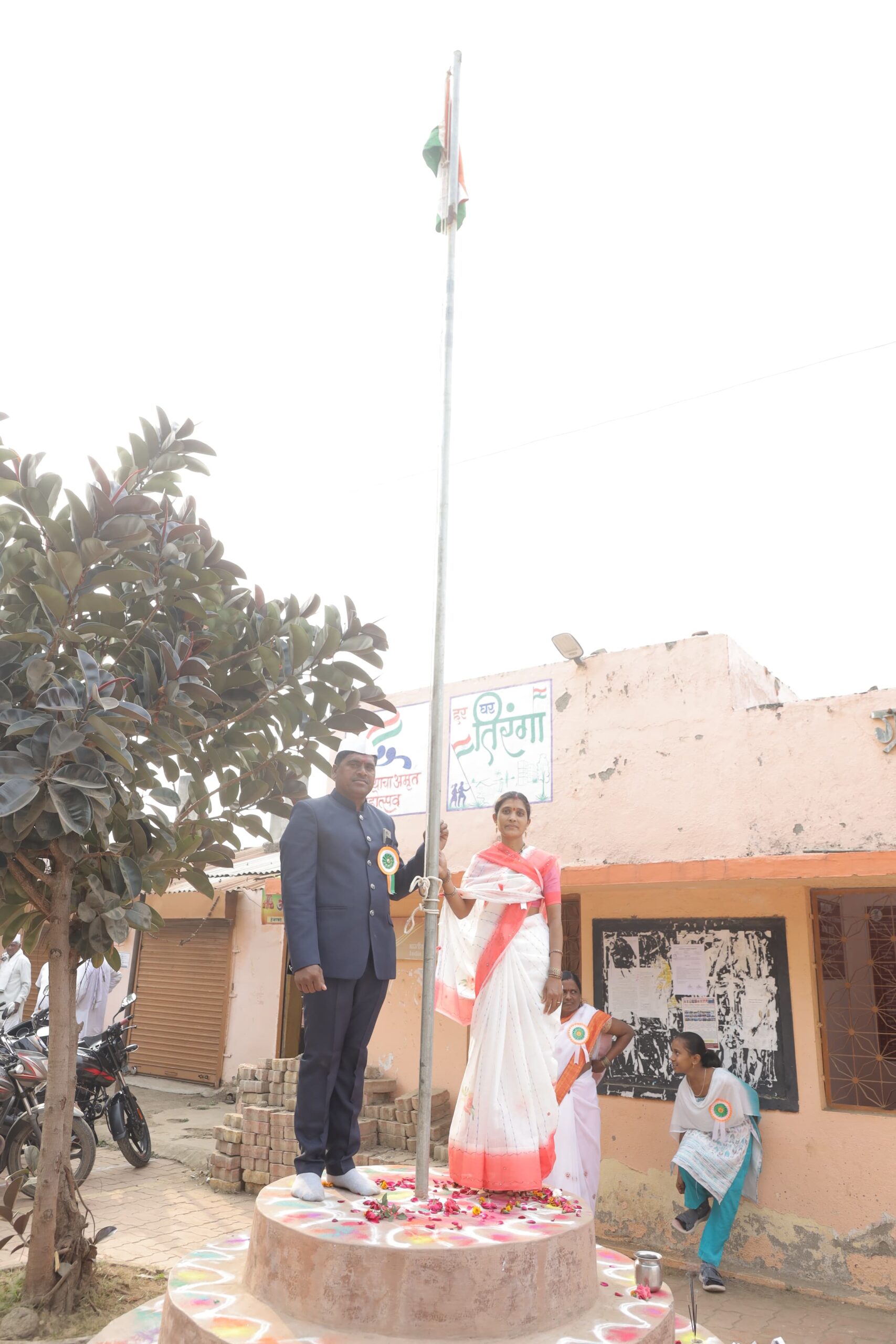 सुरेखा शरद काळे व ग्रामसेवक बी.बी.काळे भाऊसाहेब यांच्या शुभहस्ते तिरंगा ध्वजपुजन करुन तिरंगा फडकवण्यात आला.