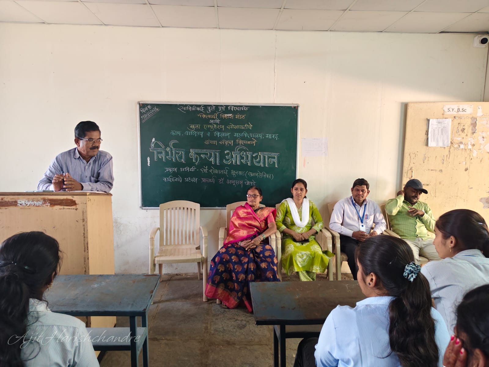 बालाजी देडगाव (प्रतिनिधी)- नेवासा तालुक्यातील माका येथील कला, वाणिज्य व विज्ञान महाविद्यालयात निर्भय कन्या अभियान कार्यक्रम साजरा करण्यात आला. कार्यक्रम प्रसंगी प्रमुख पाहुणे म्हणून शोभाताई एकनाथराव भुजबळ यांनी विद्यार्थीनींना मोलाचे मार्गदर्शन केले. तसेच महाविद्यालयाचे प्राचार्य डॉ. भानुदास चोपडे यांनी अध्यक्षस्थान भूषवून विद्यार्थिनींनी निर्भय, निडर आणि निर्भीड व्हावे असे आवाहन केले. महाविद्यालयाची विद्यार्थिनी सानिया शेख हिने सूत्रसंचालन केले, तसेच कार्यक्रमाचे प्रास्ताविक प्रा. अजित हरिश्चंद्रे यांनी केले.
