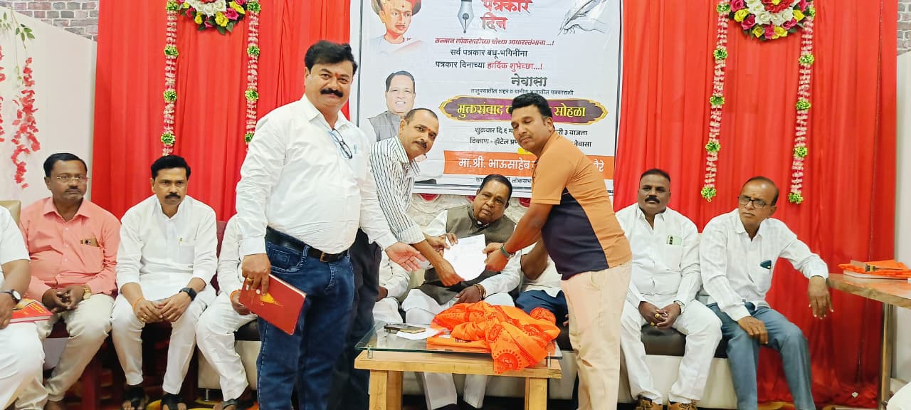नेवासा (प्रतिनिधी)- नेवासा येथील औदुंबर चौकात हॉटेल प्रणामच्या सभागृहात खासदार भाऊसाहेब वाकचौरे यांच्या वतीने पत्रकारांसाठी आयोजित मुक्त संवाद सन्मान सोहळयाला उत्स्फूर्त प्रतिसाद मिळाला. यावेळी खासदार वाकचौरे यांनी नेवासा तालुक्यातील पत्रकारांशी मुक्त संवाद साधून केलेल्या कामांचा लेखाजोखा सादर केला. पत्रकारांच्या पेन्शन योजनेतील जाचक अटी रद्द करण्यासाठी मी प्रयत्नशील असून चांगला प्रस्ताव तयार करा त्यासाठी मी संसदेत आवाज उठविणार असून पाठपुरावा करून ज्येष्ठ पत्रकारांना न्याय देण्याचा मी प्रयत्न करणार असल्याची ग्वाही खासदार वाकचौरे यांनी यावेळी बोलतांना दिली.