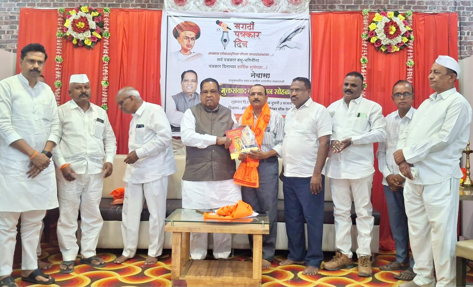 खासदार भाऊसाहेब वाकचौरे यांच्या अध्यक्षतेखाली झालेल्या पत्रकारांच्या मुक्त संवाद सोहळयाच्या प्रसंगी शिवसेनेचे जिल्हा समन्वयक मुकुंद शिनगर, ज्येष्ठ पत्रकार बाळासाहेब तनपुरे, शिव सहकार सेनेचे राज्य उपप्रमुख बालेंद्र पोतदार, जिल्हा उपप्रमुख हरिभाऊ शेळके, ज्येष्ठ पत्रकार बन्सीभाऊ एडके, नेवासा प्रेस क्लबचे मार्गदर्शक पत्रकार अशोक डहाळे, नेवासा तालुका एकता पत्रकार संघाचे अध्यक्ष संदीप गाडेकर, शिवसेना तालुका उपप्रमुख मुन्ना चक्रनारायण, शहरप्रमुख नितीन जगताप, पोलीस पाटील सुभाष कडू पाटील, गफूरभाई बागवान, रामभाऊ केंदळे व्यासपीठावर उपस्थित होते.